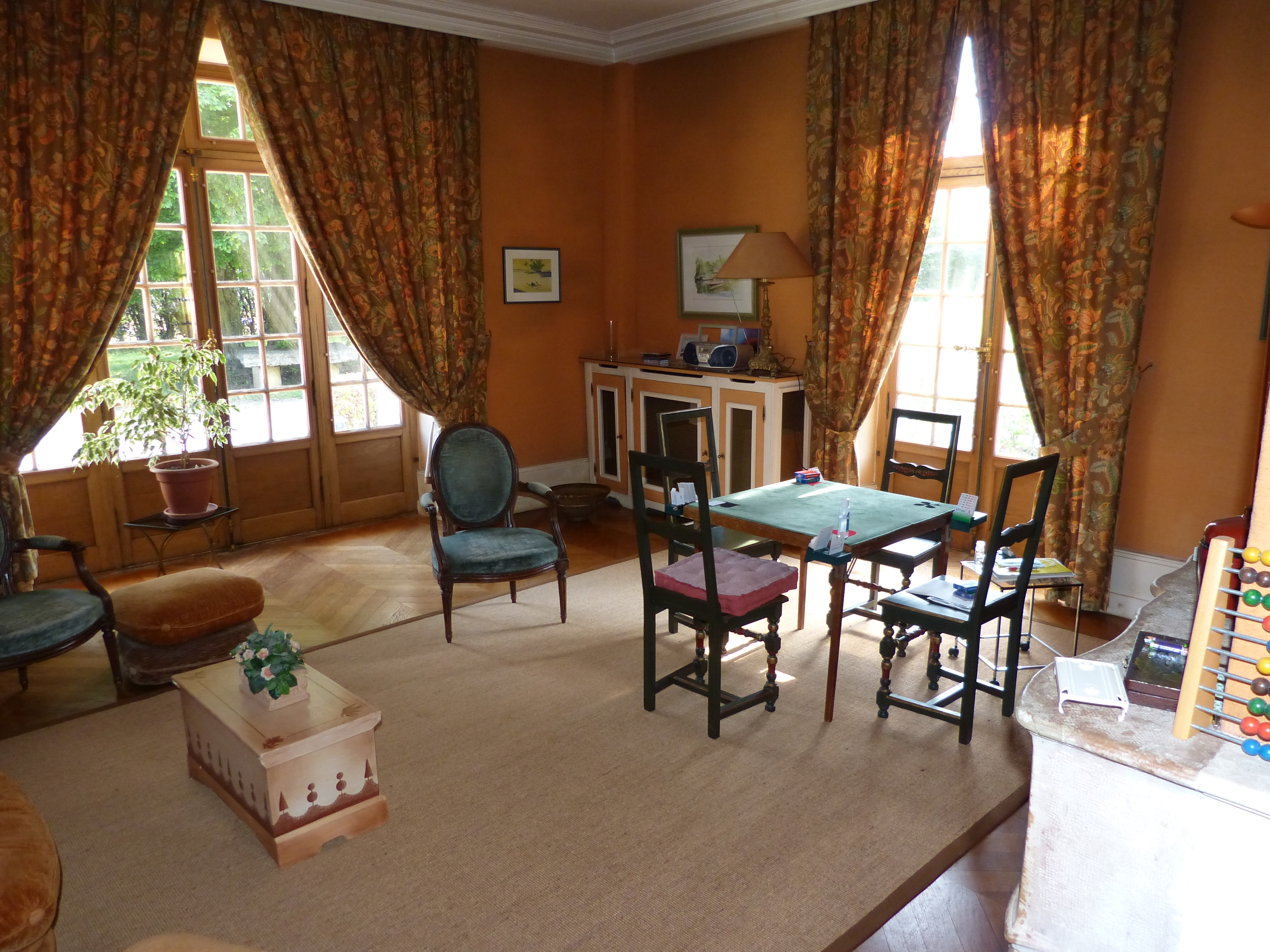 Cachet de l'ancien avec belles cheminées, boiseries et moulures, sols en parquet chêne à bâton rompus. Fenêtres bois double vitrage.